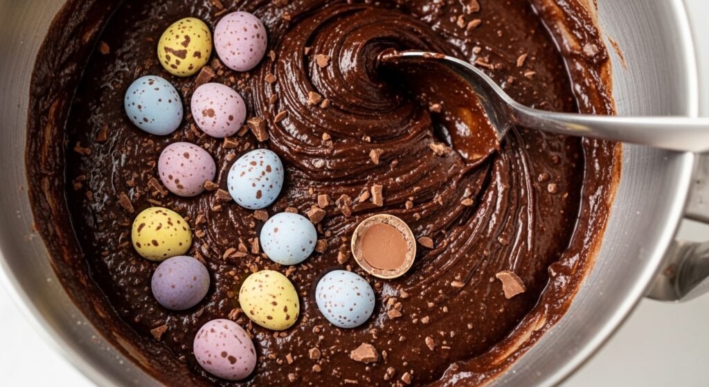 Cadbury Mini Eggs have always been a staple of the seasonal goodies and the candy shell that surround it is crunchy whereas the center is filled with creamy chocolate. Mixed into cake batter and frosting they give a fun texture and a decadent chocolate taste that immediately transforms an ordinary dessert.