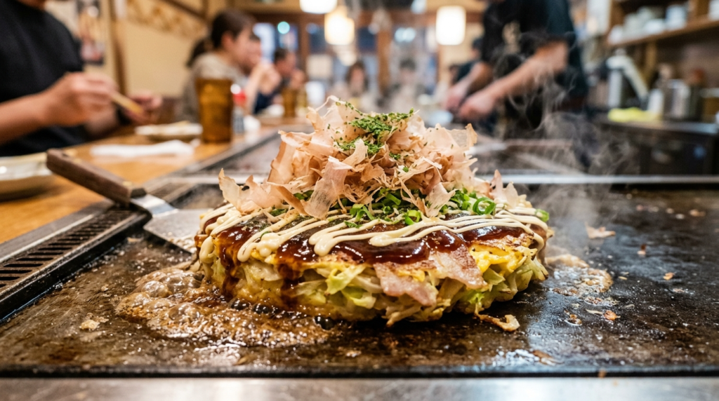 Frequently described as a “Japanese savoury hotcake,” okonomiyaki is far more complex. Made with tattered cabbage, batter, and colourful proteins, it’s cooked on a griddle and outgunned with pungent sauce, mayo, and bonito flakes. Its interactive cuisine style and customizable constituents make it appealing to ultramodern beaneries who enjoy both personalisation and experience.