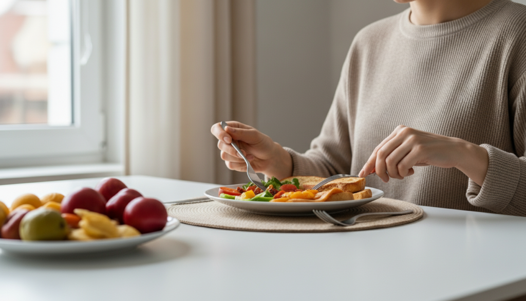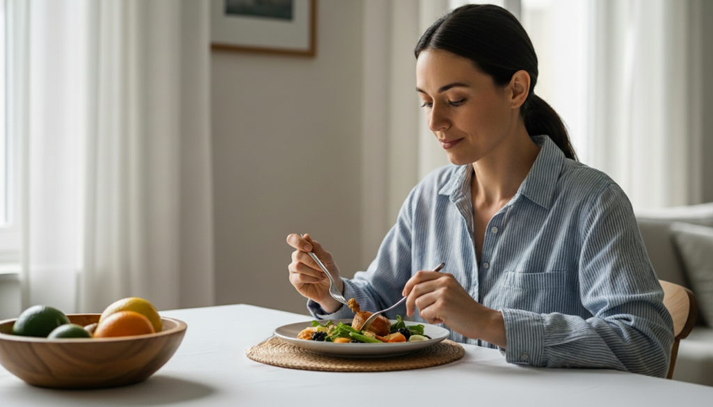 Eating with attention rather than rushing through meals allows the body to recognize fullness and satisfaction. Taking a few moments to focus on the meal encourages better digestion and supports healthier portion control.