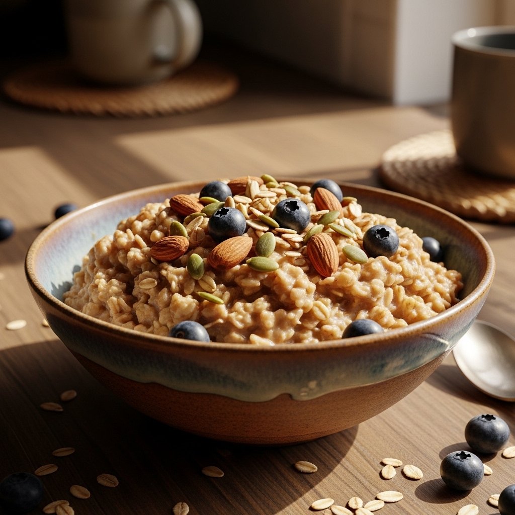 A bowl of whole oats oatmeal is also full of soluble fiber which will absorb water and create a gel like texture in the digestive tract, resulting in prolonged satiety. Nuts or seeds increase the amount of protein and make this simple choice a highly nutritious and satisfying one.
