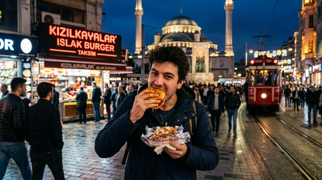Istanbul, Turkey: Islak Burger in Taksim Square