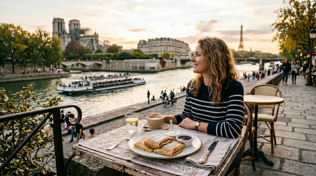 Indeed, in romantic Paris, the night brings its own culinary charm. Street- side merchandisers serve warm Nutella or sugar-butter blintzes, perfect for a quiet perambulation along the Seine under glowing streetlights.