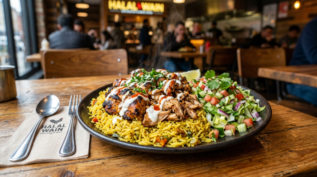 In New York City, the thoroughfares never sleep, and neither do the halal wagons. The fabulous chicken over rice, concentrated with ambrosial spices, white sauce, and hot sauce, becomes a chief for night owls navigating Manhattan’s energy.