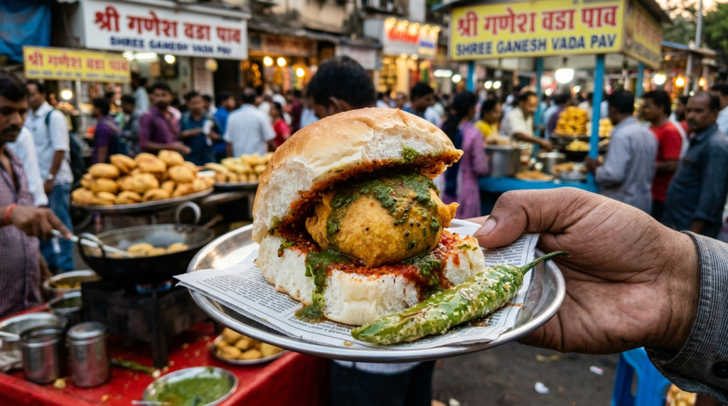 Frequently called India’s own burger, Vada Pav features a racy potato cutlet squeezed between a bun and concentrated with chutneys and fried chilies. Its simplicity is deceptive. The explosion of spice, crunch, and wimpiness makes it incredibly habit- forming, especially when eaten fresh from a roadside stall.