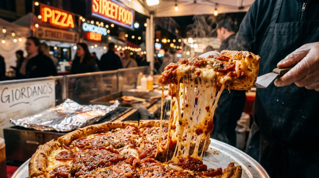 Unlike traditional pizza, Chicago’s deep- dish interpretation is more like a hearty pie. Vended by the slice in numerous roadside spots, it features a thick crust concentrated with cheese, condiments, and chunky tomato sauce on top. It’s rich, filling, and a must- try for anyone pining for comfort food with a twist.