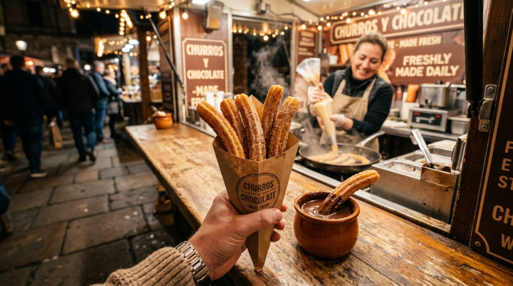 Mexican cuisine describes churros as sticks of fried dough covered in cinnamon sugar. San Diego road merchandisers generally vend them warm and fresh, occasionally with dipping gravies like caramel or chocolate.