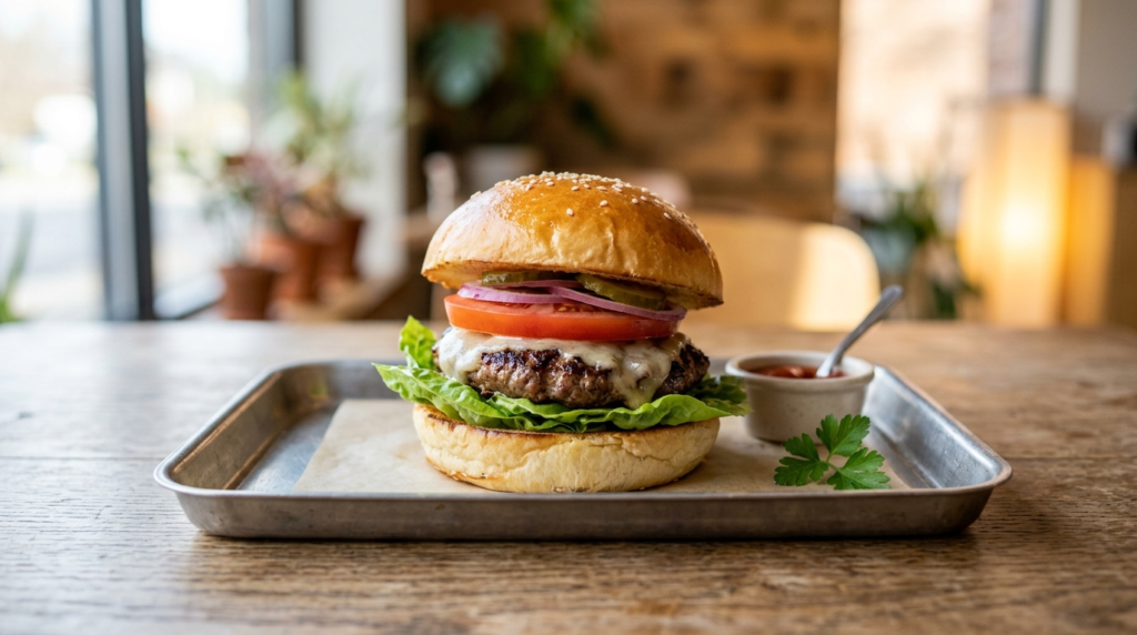 The burger does not have fantastic components; rather, it focuses on perfecting the basics: fresh beef, soft buns, crisp vegetables, and a hand spread. Each element is balanced so that no single flavor overpowers the others, creating a clean, satisfying bite every time.