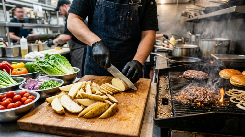 Unlike numerous fast- food chains, there is a visible commitment to newness. Potatoes are hulled and cut in- store, vegetables are crisp and vibrant, and galettes are cooked fresh to order. The difference is subtle but conspicuous, especially for those used to reusing fast food.