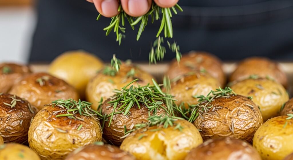 During the last few minutes, sprinkle fresh rosemary or thyme on the potatoes and add a traditional Italian aroma to the potatoes that adds flavor and appearance.