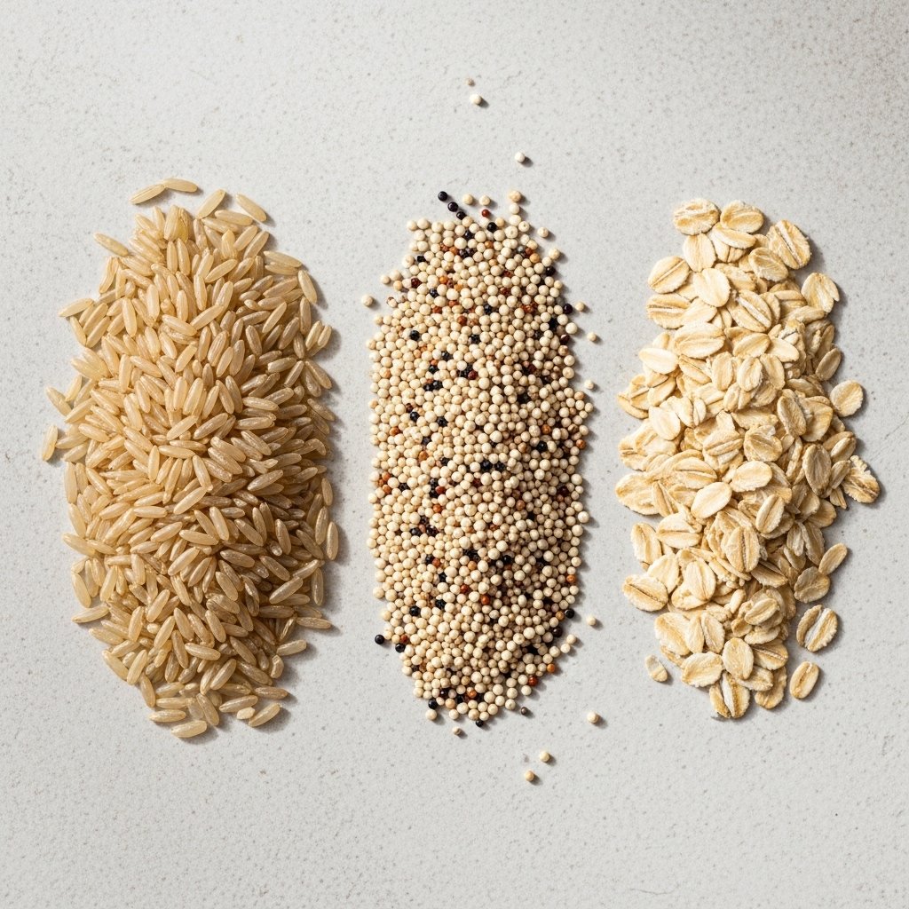 Brown rice, quinoa, and oats contain fiber and complex carbohydrates and give rise to stable energy. They aid in normal levels of blood sugar and digestive well-being, and as such are a reliable foundation of feeding meals all over the week.