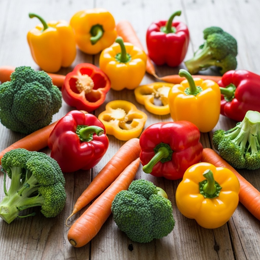 The phytonutrients found in brightly colored vegetables like bell peppers, carrots, and broccoli are very diverse and thus contribute to the overall well-being. The idea of having a variety of colors will cover a greater range of nutrients and promote meals that are aesthetically attractive and enriching.