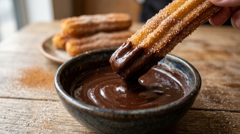 In Madrid, churros are deep- fried until crisp and dipped into thick hot chocolate. The sugar crunch, followed by rich cocoa, creates a dessert circle you don’t want to break.