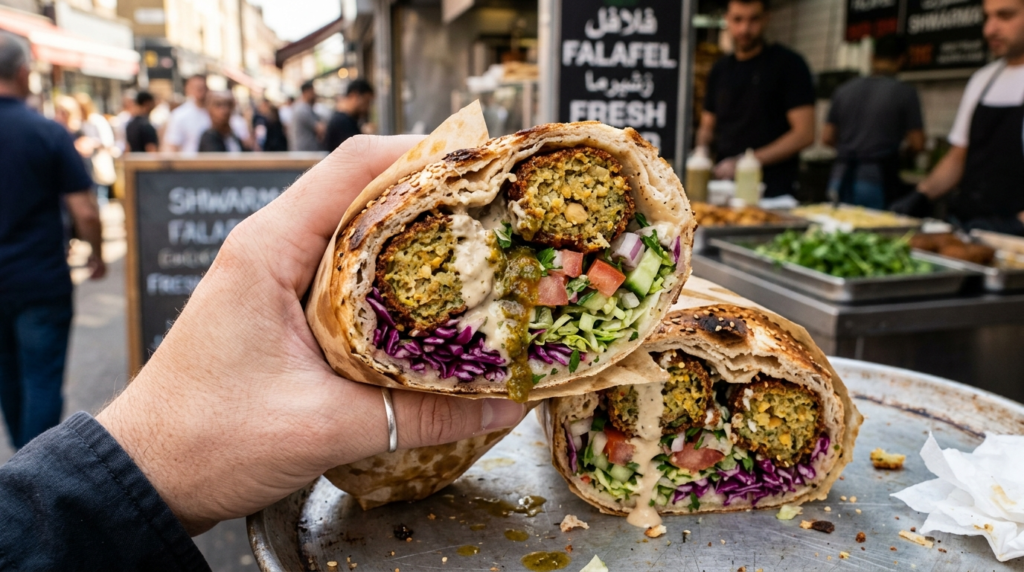 In Cairo, falafel is wrapped with pickles, vegetables, and tahini after being deep- fried to perfection. Every time, the crunch and delicate gravies combine to produce the ideal bite.