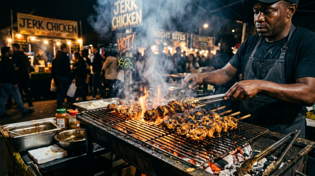 On the thoroughfares of Kingston, grilled chicken is marinated in spices and grilled over open fires. The hoarse aroma and racy crust make it irresistibly craveable.