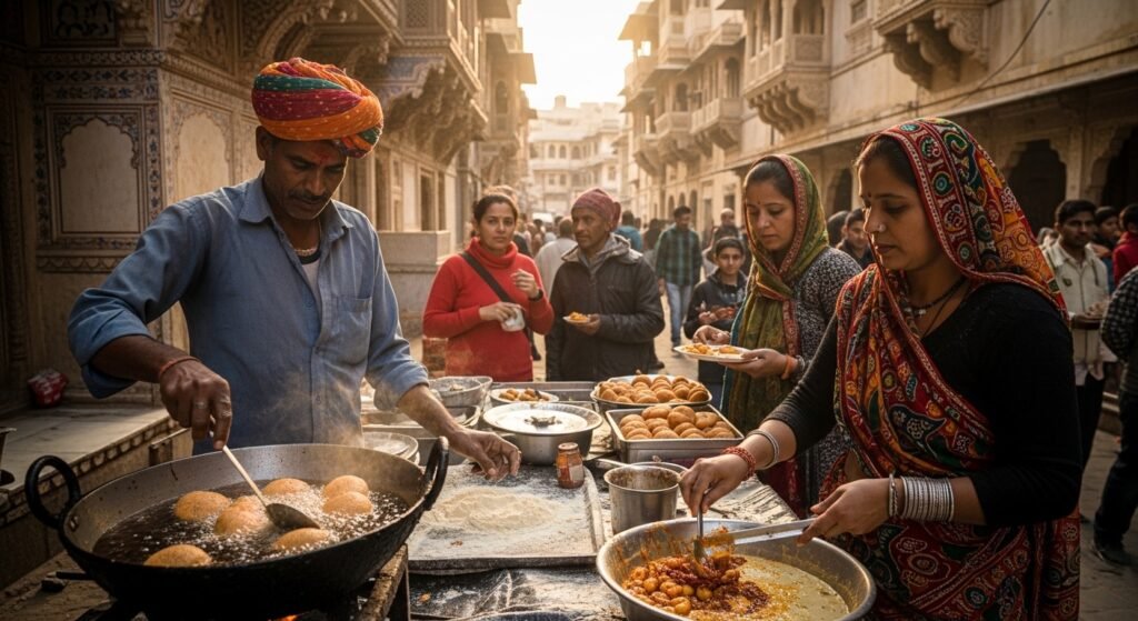 Udaipur is entrenched in Rajasthani cuisines. The cuisine such as dal baati churma, gatte ki sabzi and ker sangri is a historical and climatic expression of the area.These are not merely meals, they are also cultural experiences.