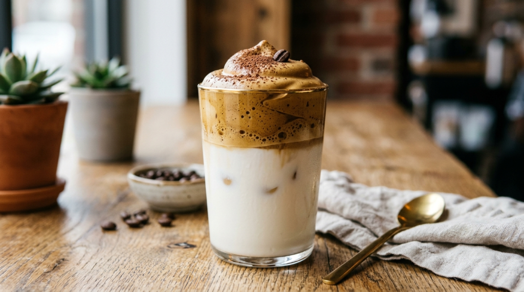 Whipped coffee served over milk became a lockdown sensation. The delicate froth on top delivers a bold, slightly bitter punch balanced by the milk below. What surprised me was how strong it is. This isn’t a casual drink; it’s a caffeine hit with style.