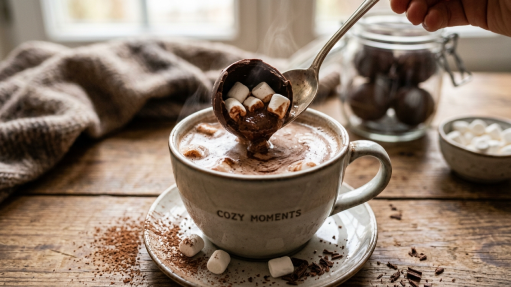 Chocolate spheres filled with cocoa grease and marshmallows that melt into milk. The experience is theatrical and satisfying to watch. Flavor-wise, it depends heavily on the quality of the chocolate used. The surprising part? The joy comes more from the process than the drink itself.