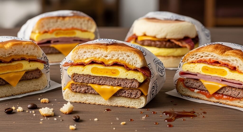 Fast-food breakfast sandwiches are designed to be quick, portable, and satisfying for busy mornings. These sandwiches usually combine eggs, cheese, and breakfast meats inside biscuits, muffins, or croissants. While convenient, the combination of processed ingredients and refined bread can make them heavier than a typical homemade breakfast.