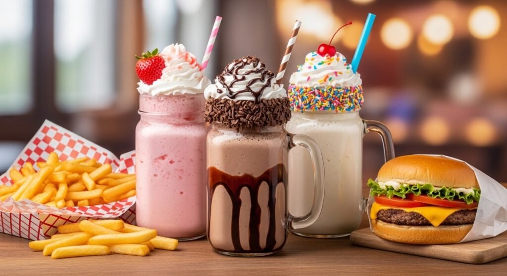Milkshakes often accompany burgers and fries as part of a classic fast-food combo. Their creamy texture and sweet flavor make them feel like a treat rather than a meal component. Because they often contain ice cream, syrups, and whipped toppings, milkshakes can add significant sugar and calories to an already filling meal.